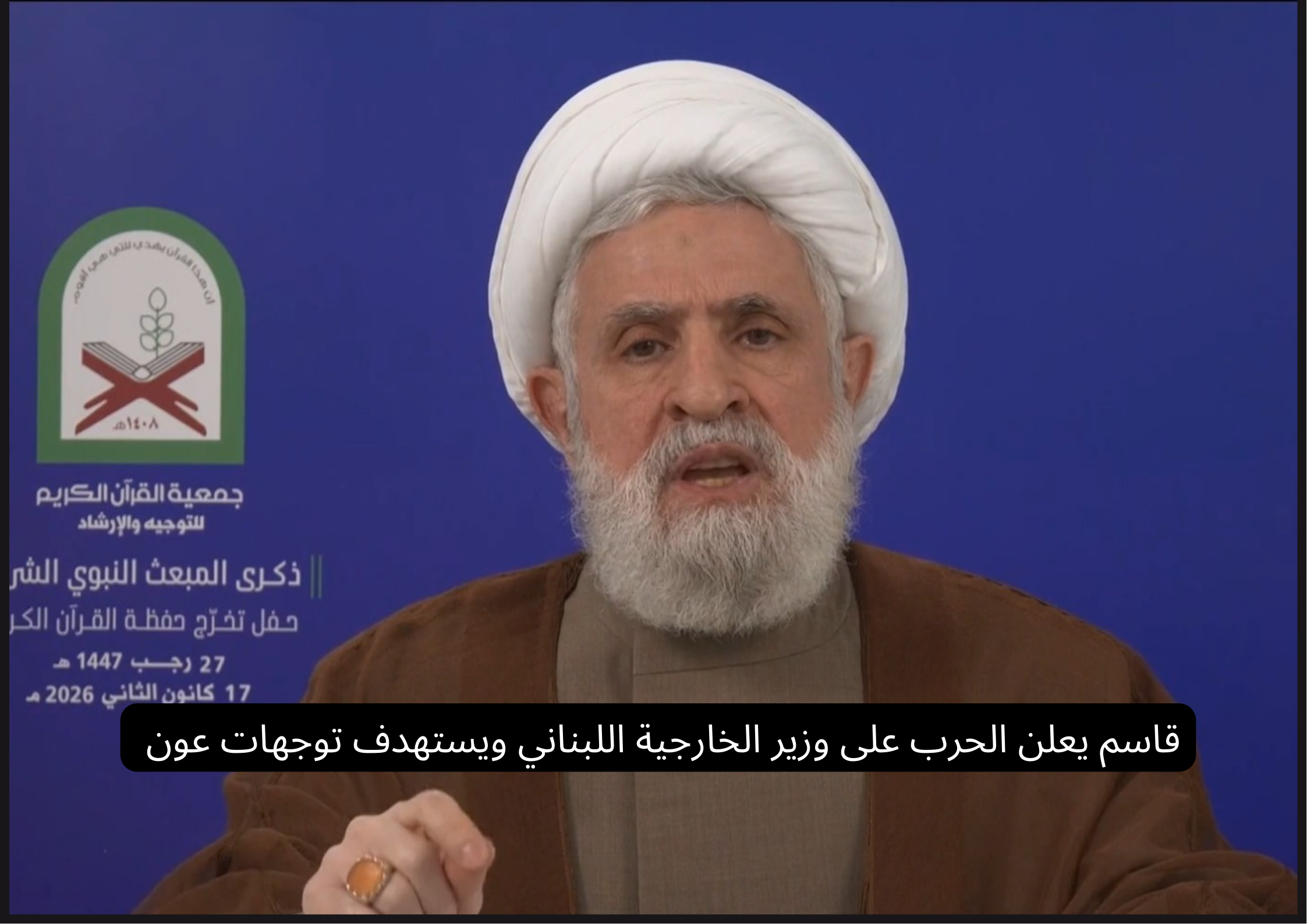 المعركة التي يخوضها "حزب الله" ضد وزير الخارجية اللبناني يوسف رجّي حوّلها أمينه العام الشيخ نعيم قاسم إلى حرب "إسكات" و"إطاحة". قدم قاسم تصوّرًا مفاده أنّ مواقف رجي المعادية لاستمرار السلاح بيد "حزب الله" هي من "عندياته". ورأى قاسم أنّ "عدم وجود وزير للخارجية اللبنانية عطّل الدبلوماسية"، متسائلاً "لمن هو وزير الخارجية ؟"، متهمًا إيّاه بأنّه "يعمل خارج سياسة الدولة والعهد، ويتلاعب بالسلم الأهلي ويحرّض على الفتنة وهو ضدّ العهد والحكومة وضدّ الشعب اللبناني وضدّ المقاومة"، لافتًا إلى أنّ "الحكومة اللبنانية تتحمّل مسؤولية هذا الخلل الذي اسمه وزير الخارجية إمّا بتغيير الوزير وإمّا بإسكاته وإمّا إلزامه بسياسة لبنان". وكان ملاحظًا أنّ قاسم بعد ذلك هاجم الدعوة إلى حصرية السلاح، مقدمًا حججه التي لا تناقض مواقف رجي فحسب بل تستهدف مباشرة أيضًا المواقف الأخيرة التي أطلقها رئيس الجمهورية العماد جوزاف عون في مقابلته التلفزيونية في الذكرى السنوية الأولى لانتخابه. يومها اعتبر عون أنّ سلاح حزب الله تحوّل إلى عبء على لبنان والطائفة الشيعية! وفي رد مباشر على دعوة عون ل"حزب الله" أن يتحلّى بالعقلانية، قال قاسم اليوم إنّ "المقاومة هي الأعقل لأنها تصرّفت بحكمة وبنت نسيج علاقة مع الدولة والقوى المختلفة وأن تنفذ اتفاقًا من دون ضربة كفّ واحدة، والعاقل ليس من يقدّم التنازلات لاسرائيل بل بحفظ قوّتنا".