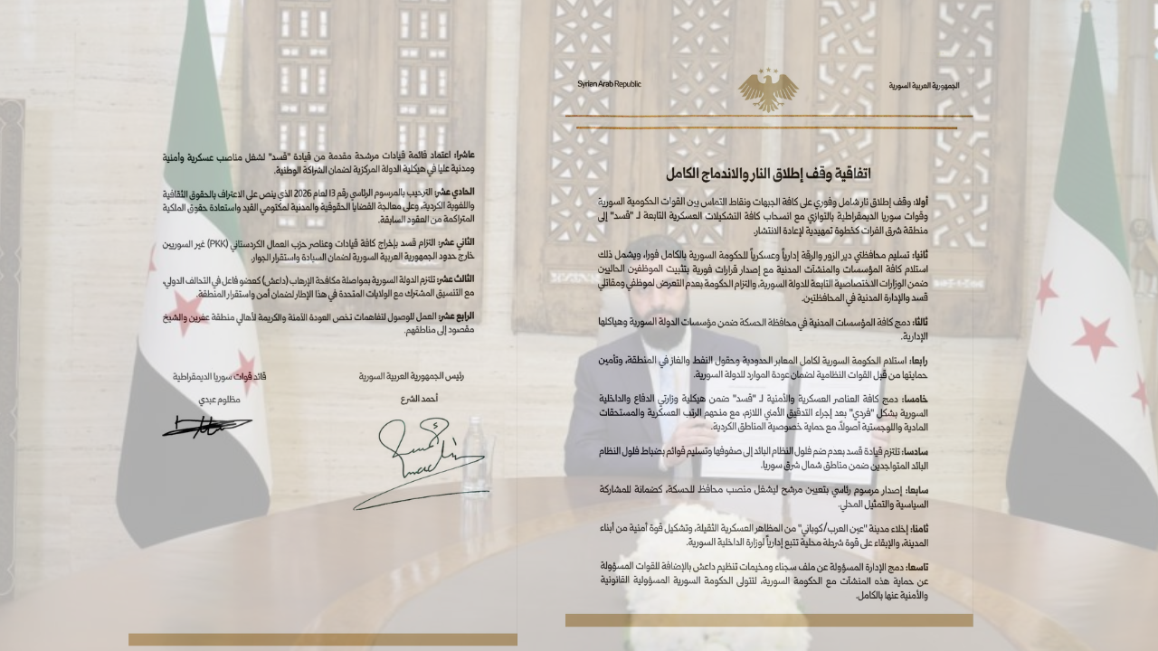 بعد أكثر من سنة على فشل الحل السلمي الذي تمّ التوصل اليه بين الرئيس السوري أحمد الشرع وقائد "قسد" الكردية مظلوم عبدي، لجأت دمشق إلى القوة العسكرية لتفرض سلطتها المركزية على حلب بداية ثم على دير الزور والرقة بشكل كامل وإبعاد التنظيمات الكردية المسلحة إلى شرق الفرات في مرحلة أولى. وبهذه العملية التي انتهت إلى اتفاق وقف إطلاق شامل وقعه كل من الشرع وعبدي، لم توسع دمشق سلطتها في الجغرافيا السورية فحسب بل وضعت يدها أيضًا على أهم الموارد الطبيعية في سوريا، ممّا يمكنها من المضي في مشاريع بناء البلاد. وكان لافتًا للإنتباه أنّ واشنطن بواسطة المبعوث الأميركي توم برّاك وقيادة المنطقة الوسطى في الجيش الأميركي واكبت دمشق، قبل أن ترعى اتفاق وقف إطلاق النار. وبذلك يكون الحلم الكردي بإقامة دولة مستقلة في سوريا قد تحطم، مرة جديدة وإن كان الأكراد قد نالوا حقوقا طالما حرمتهم منها دمشق بدءا بالإعتراف بخصوصيتهم العرقية والثقافية وصولا إلى حقوقهم بحمل الجنسية السورية. وفيما سينصب الإهتمام على تنفيذ مندرجات الإتفاق، فإنّ الاسئلة سوف تنصب على الجنوب السوري، فتركيا نالت حصتها مع الشرع، فهل تنال إسرائيل حصتها مع الدروز في الجنوب؟